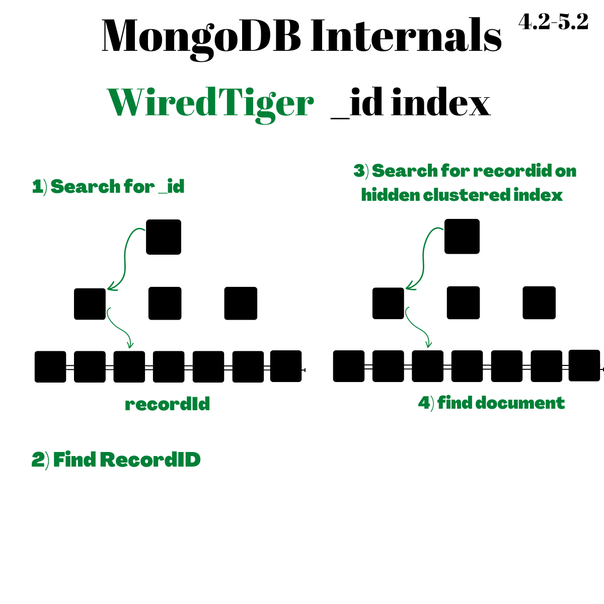 In this article I discuss the evolution of MongoDB internal architecture on how documents are stored and retrieved focusing on the index storage representation. I assume the reader is well versed with fundamentals of database engineering such as indexes, B+Trees, data files, WAL etc, you may pick up my database course to learn the skills.