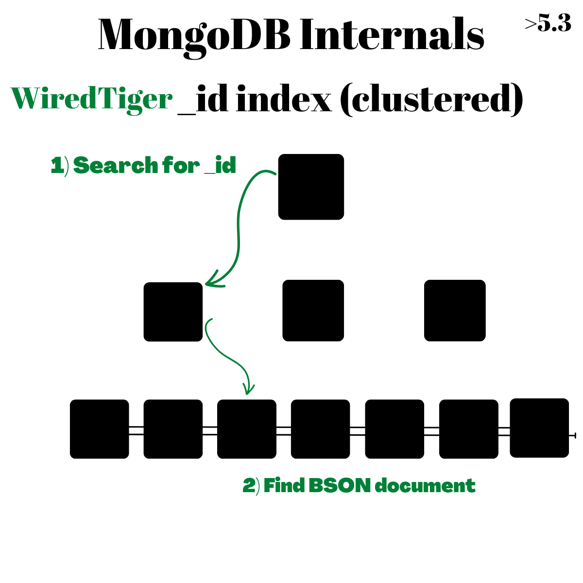 Clustered collections is a brand new feature in Mongo introduced in June 2022. A Clustered Index is an index where a lookup gives you all what you need, all fields are stored in the the leaf page resulting in what is commonly known in database systems as Index-only scans. Clustered collections were introduced in Mongo 5.3 making the primary _id index a clustered index where leaf pages contain the BSON documents and no more hidden WT index.